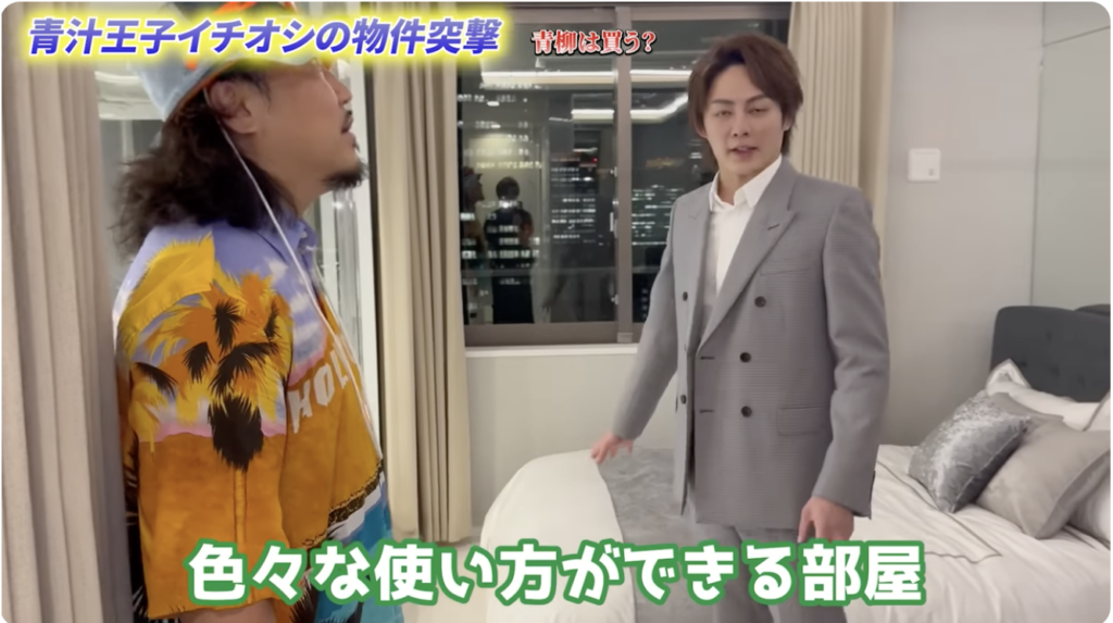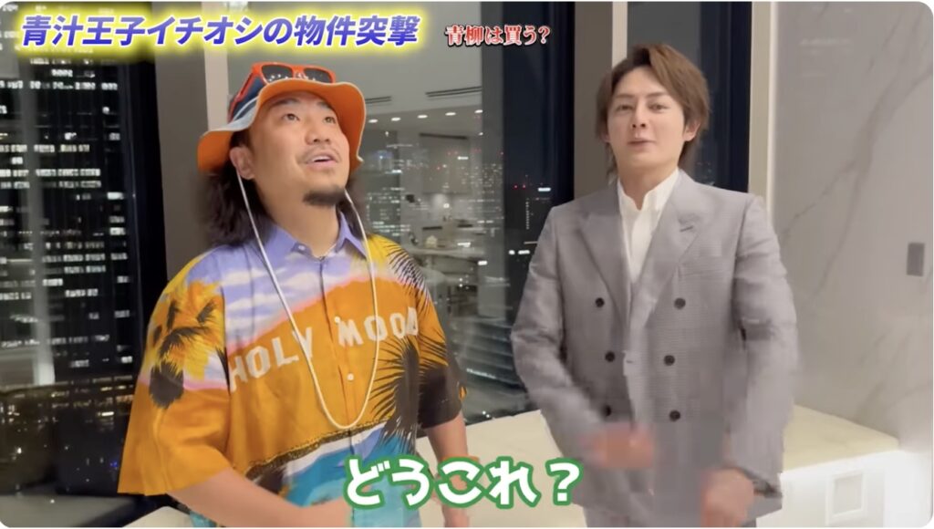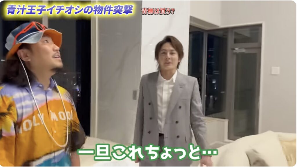 不動産会社の社長として物件を案内する三崎さん(青汁王子)に「今ちょうど内覧できる」と言われ、急きょ物件へ向かいます。