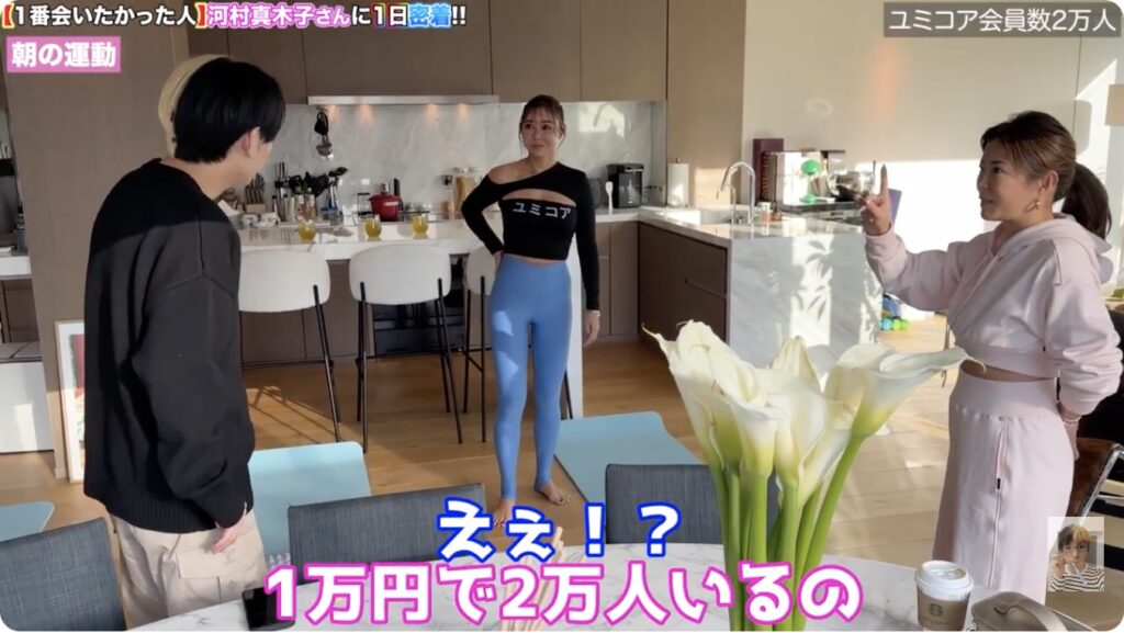 Yumikoさんはオンラインフィットネスでも人気があり、月額約1万円のサービスに約2万人の会員がいると紹介されています。