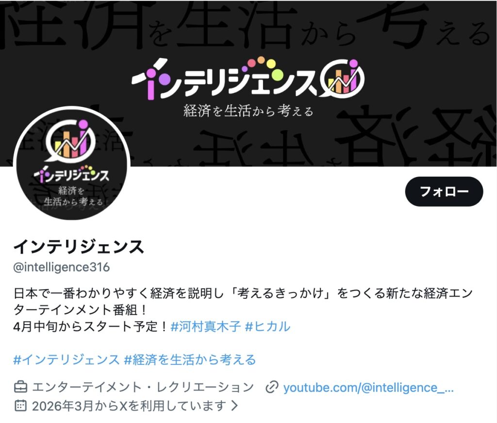 新番組「インテリジェンス」は、金融・経済・国際情勢を学ぶ教育系コンテンツとしてスタートします。
